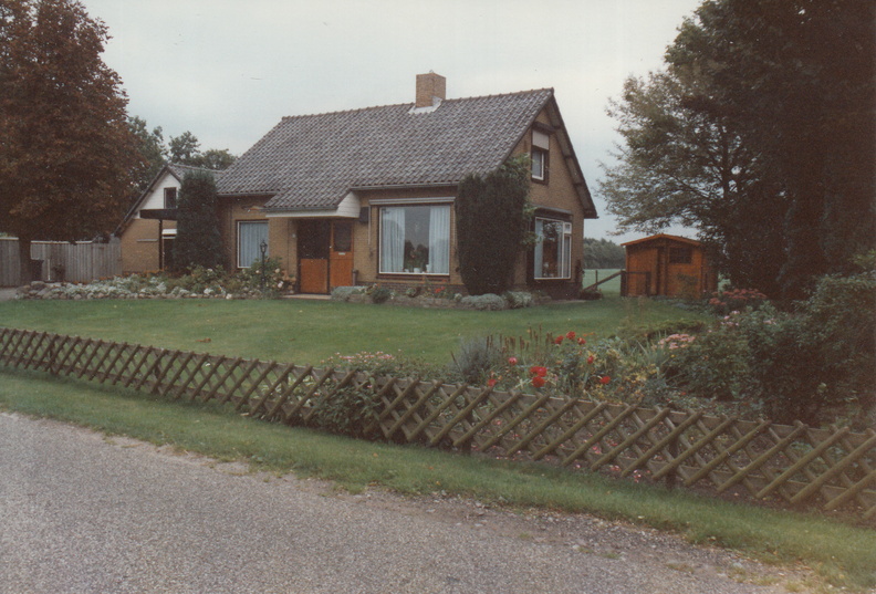 Veenweg 14 Hooglanderveen. Het witte boerderijtje rechts is de oude woning.